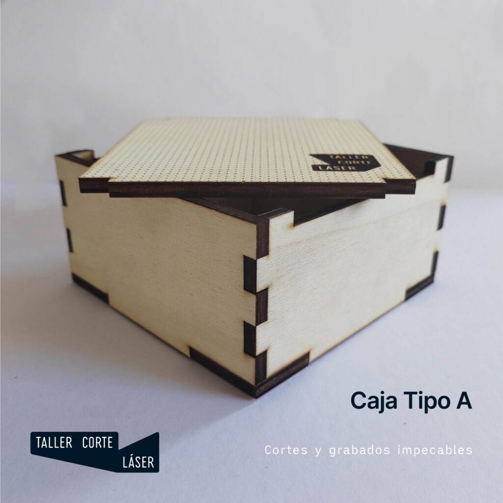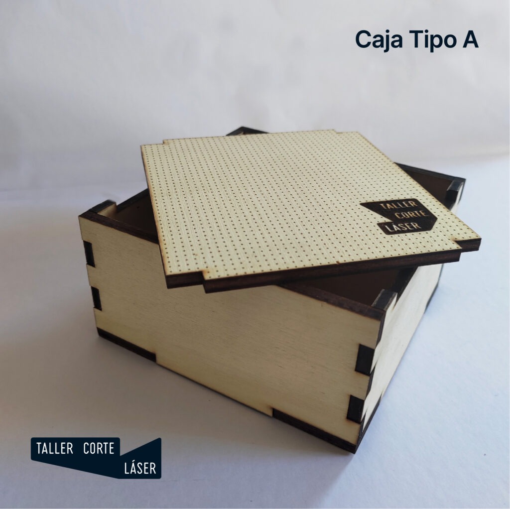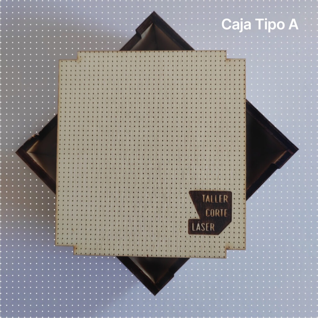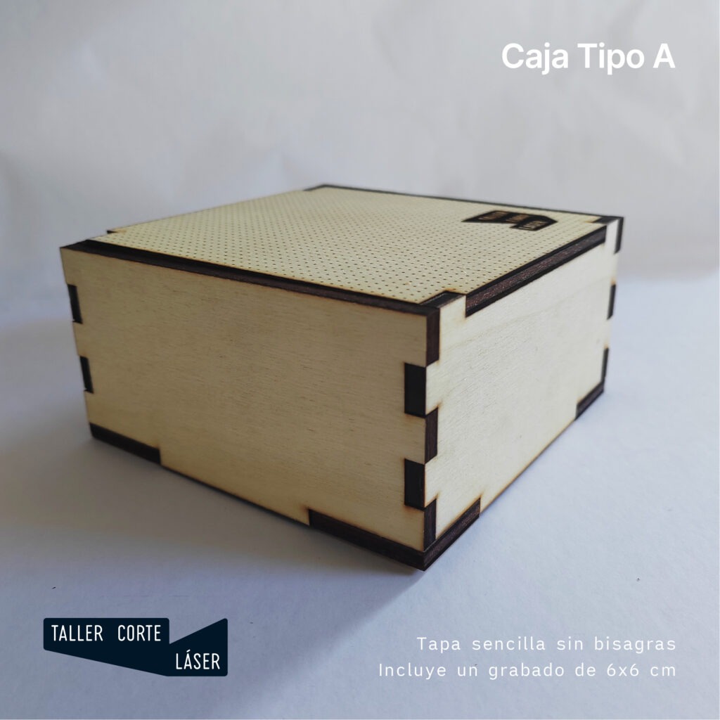 La caja tipo A es una caja sencilla de madera con una tapa de quitar y poner e incluye un grabado de 6 x6 cm máximo en la tapa.