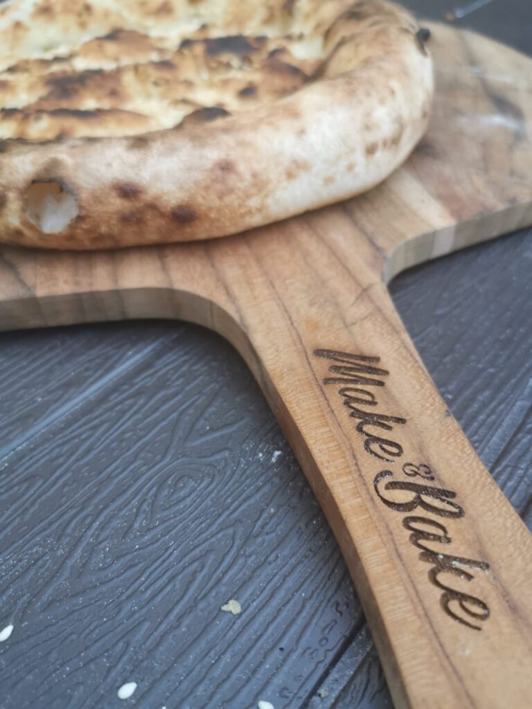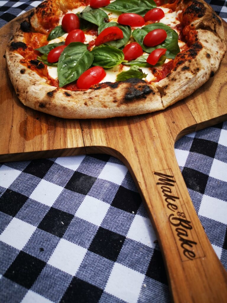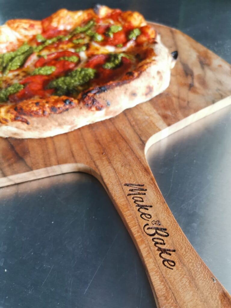 Pero una vez que se ha definido la madera y tenemos el diseño en vectores, es genial para mantener una identidad de marca consistente, como la identificación que hicimos para la pizzería Make & Bake