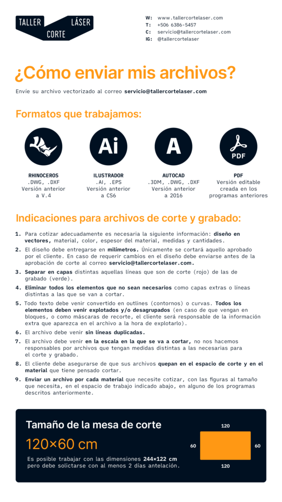 Para consultas también puede escribirnos a la dirección servicio@tallercortelaser.com o al Whatsapp +506.6386 5457