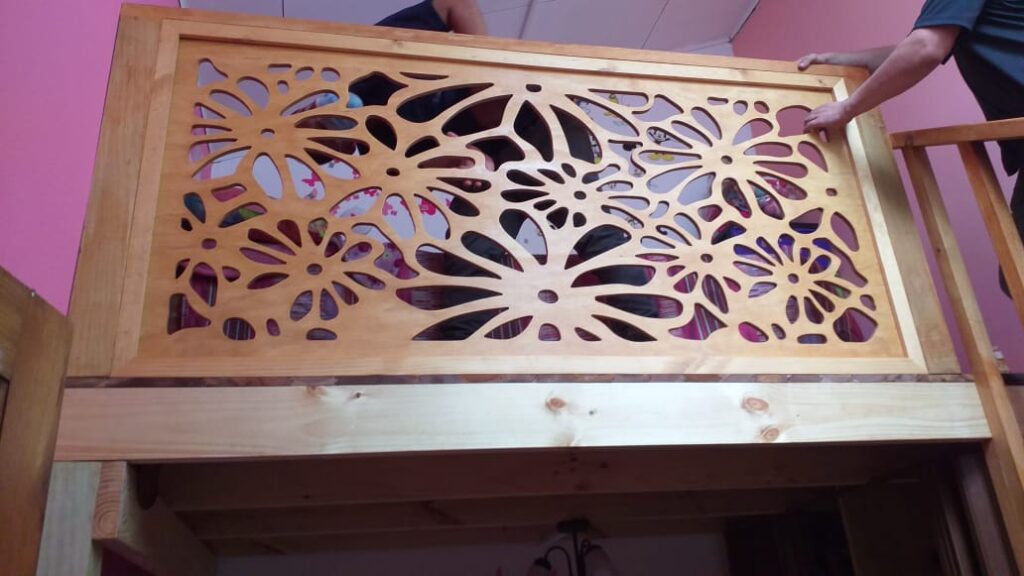 El plywood de 3mm funciona muy bien para hacer pequeñas decoraciones y cortes que no van a soportar mucho peso. O se puede ensamblar en piezas para formar diseños como el caso de nuestra empresa amiga Marian Brenes Glass