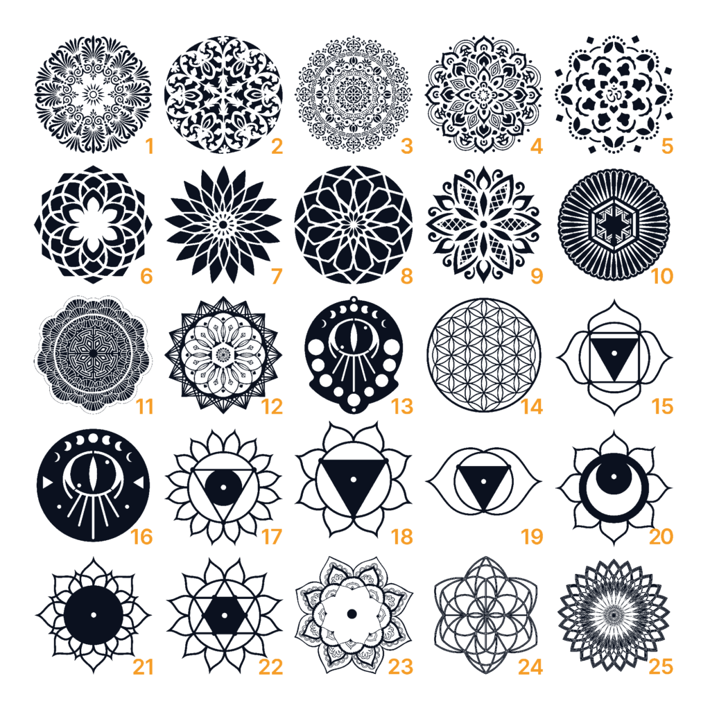 O puede escoger entre estos diseños:TODOS NUESTROS PRECIOS INCLUYEN EL I.V.A. Las medidas del mandala de la imagen son 25 cm de diámetro